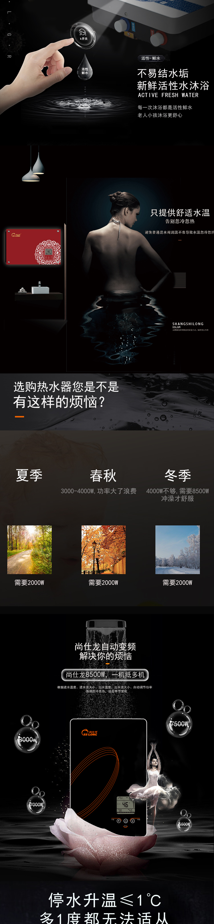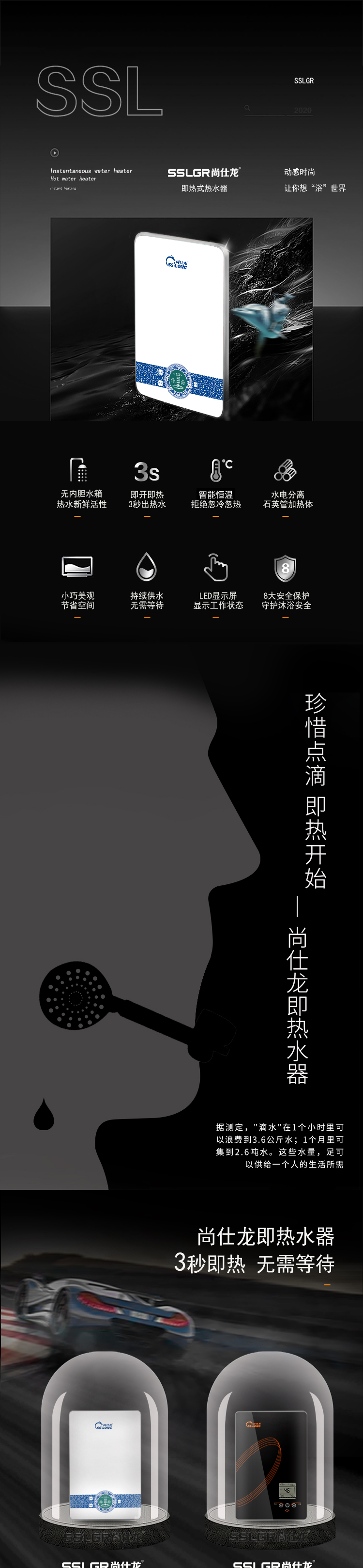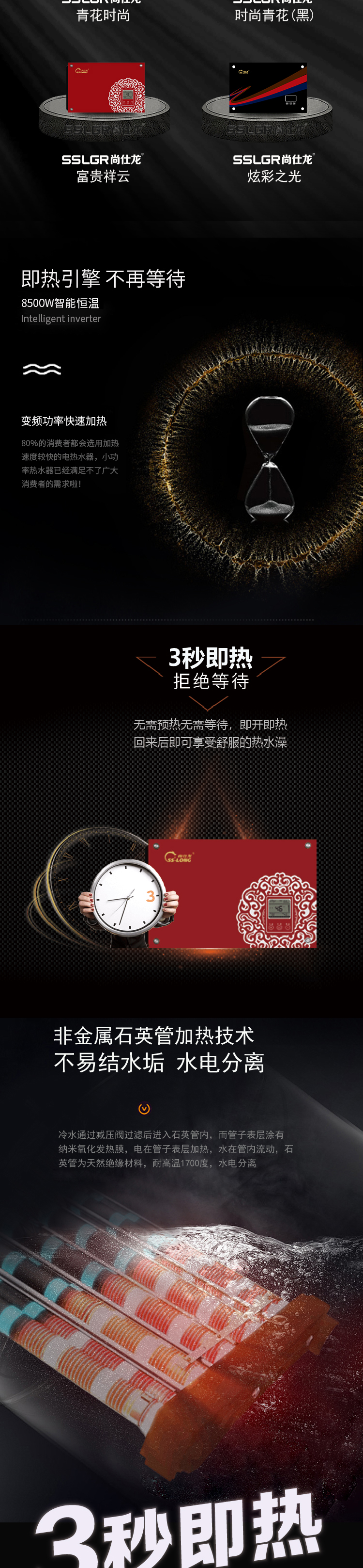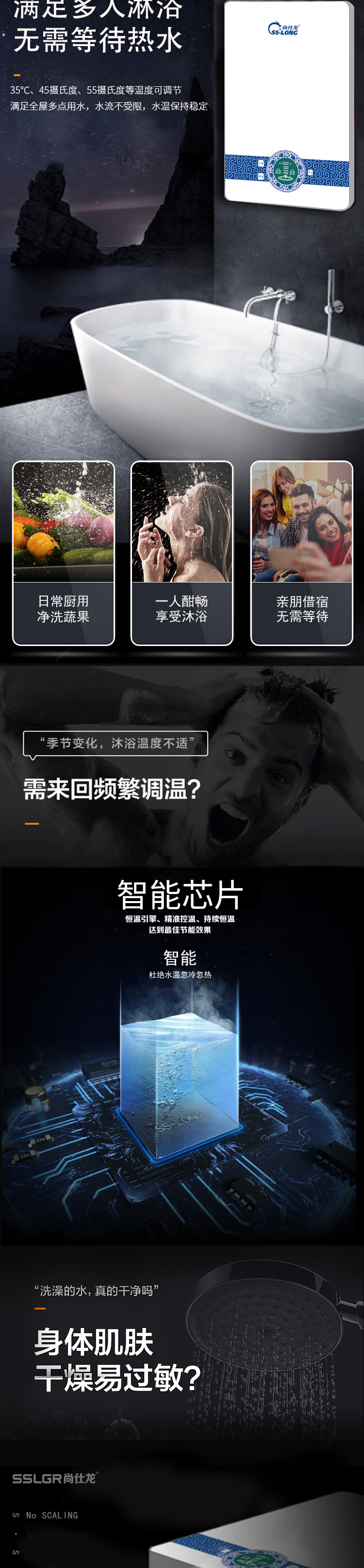 尚仕龙即热式热水器智能恒温安全省电不易结水垢 免费上门安装 150L 8500W 时尚青花白 8500w